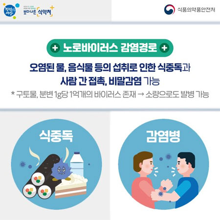 노로 바이러스는 식중독 발생의 주요 원인으로, 급성 위장염을 일으키며 냉장이나 냉동 온도에서도 감염력을 유지하는 게 특징인데요. 10마리만 사람 몸에 들어와도 급성 위장염을 일으키는 것으로 알려졌답니다.