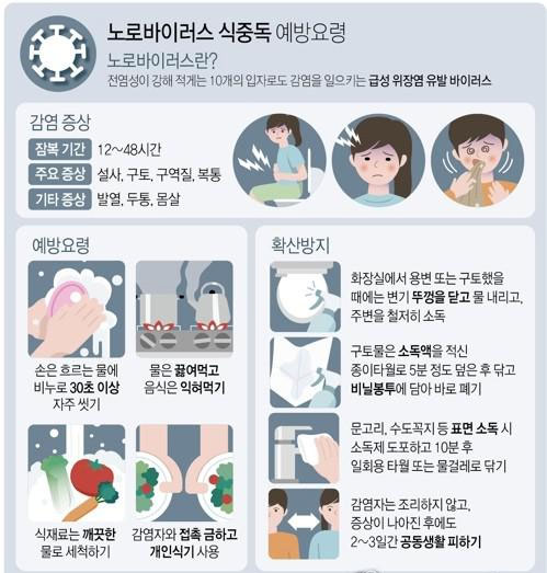 예방 백신이 없는데다 소량으로 감염을 일으킬 정도로 감염성이 높기 때문에 노로바이러스로 인한 식중독 의심 시에는 환자들을 격리하는 것이 전파 방지에 도움이 된다고 합니다.