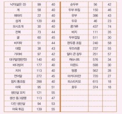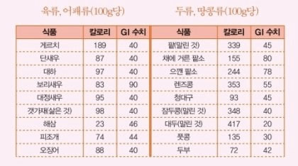 육류와 생선들은 혈당지수가 비슷합니다.