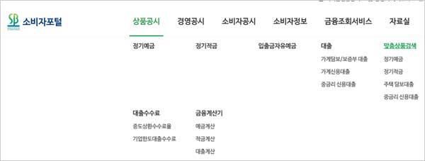 - 상품공시 선택: 메인 화면 상단의 주요 메뉴 중 '상품공시' 또는 '예금금리' 카테고리를 선택합니다.
