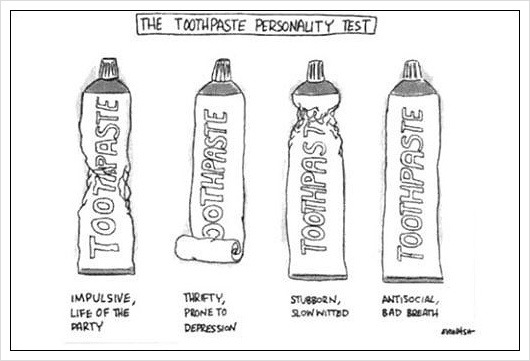 치약 짜는 습관 성격 테스트 중 충동적이고 화제의 중심 혹은 인기쟁이 성향을 지녔다고 해요.