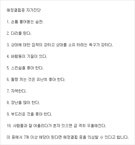 애정결핍 증상 및 애정결핍 테스트