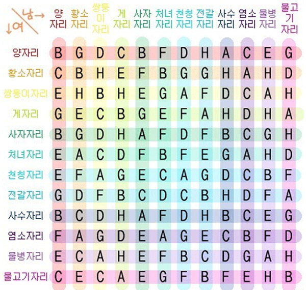 별자리 궁합 보는 방법, 별자리 궁합 표 테스트 해석 중